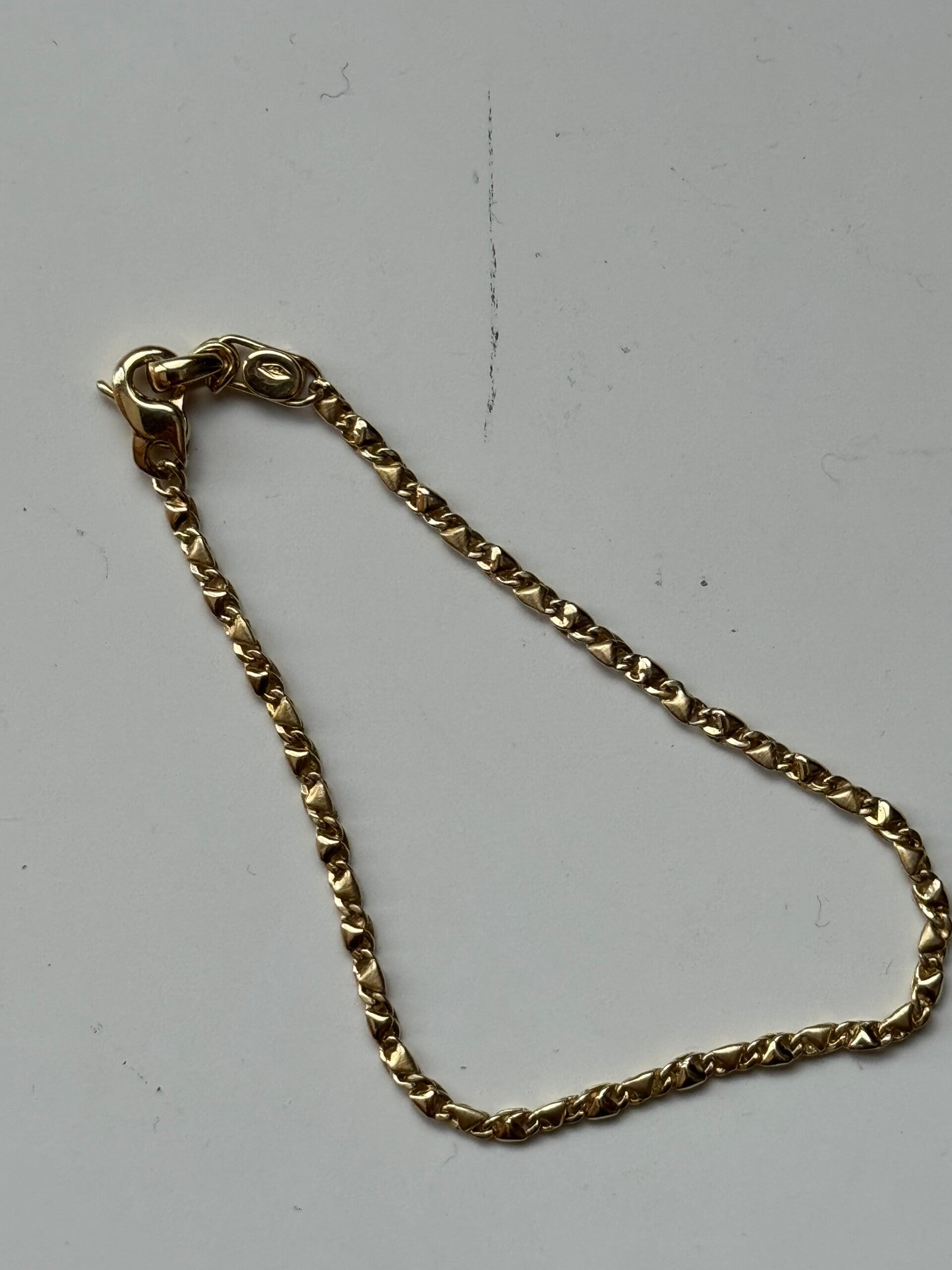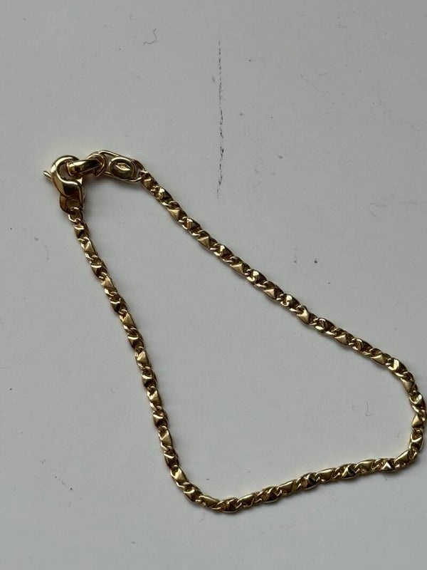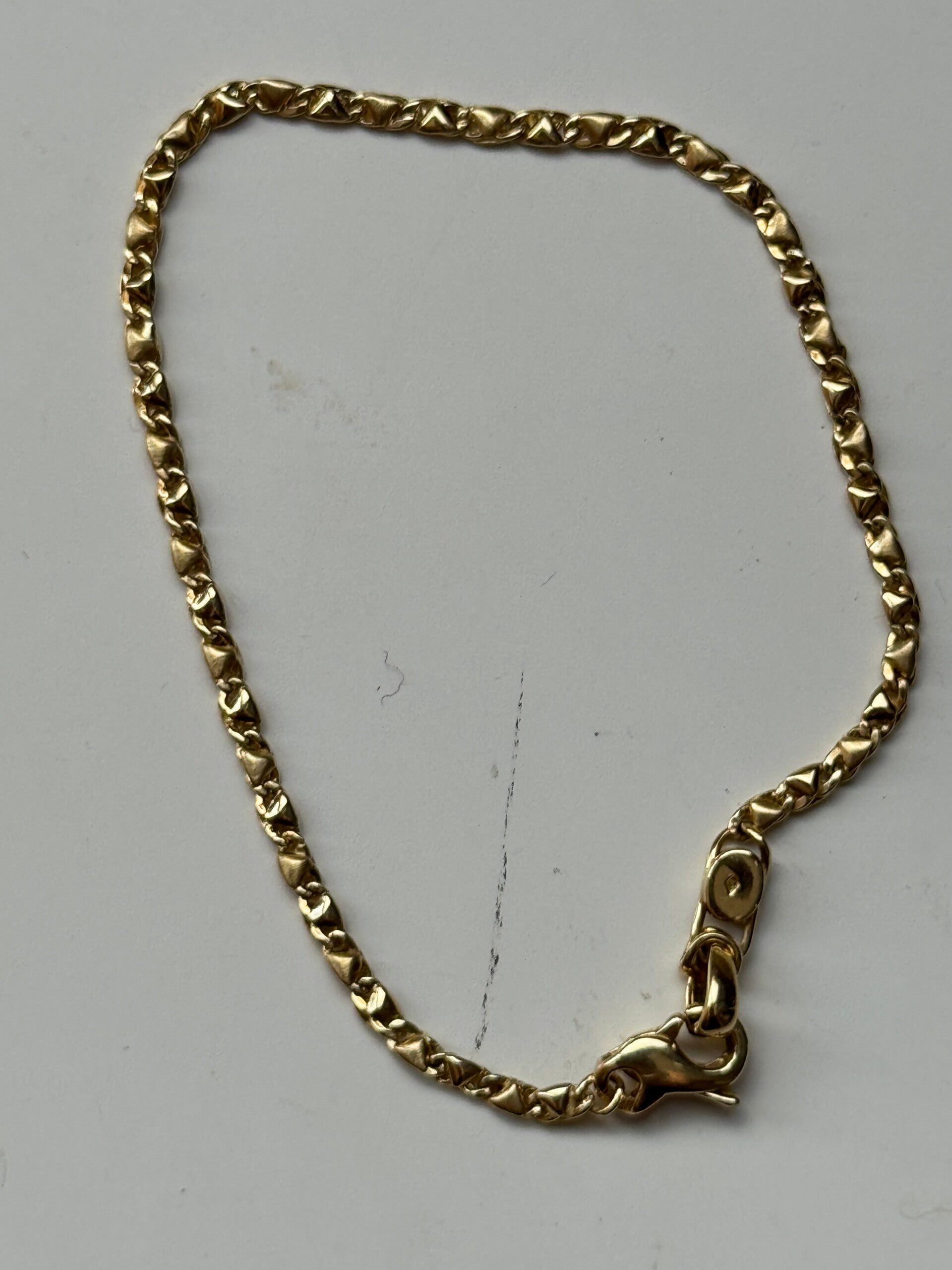 Ich habe sie in der Schweiz gekauft. Sie ist mit 750 markiert. Sie hat ein gutes Gewicht von 4.9 Gramm und liegt schön am Handgelenk. Der Verschluss ist sicher und hält was aus.