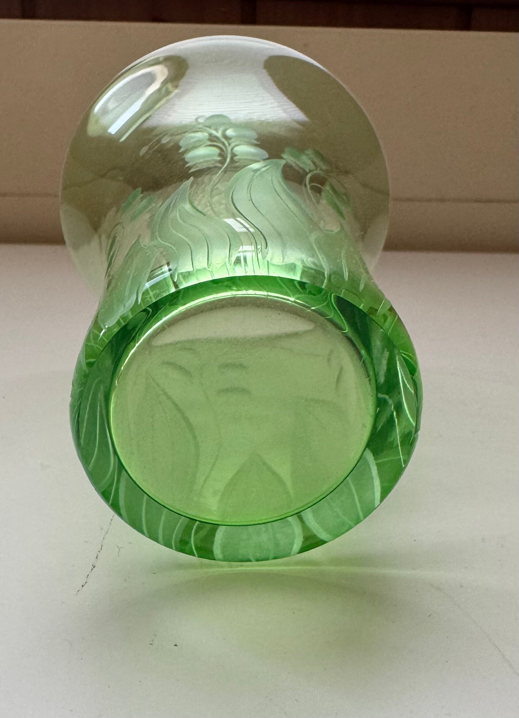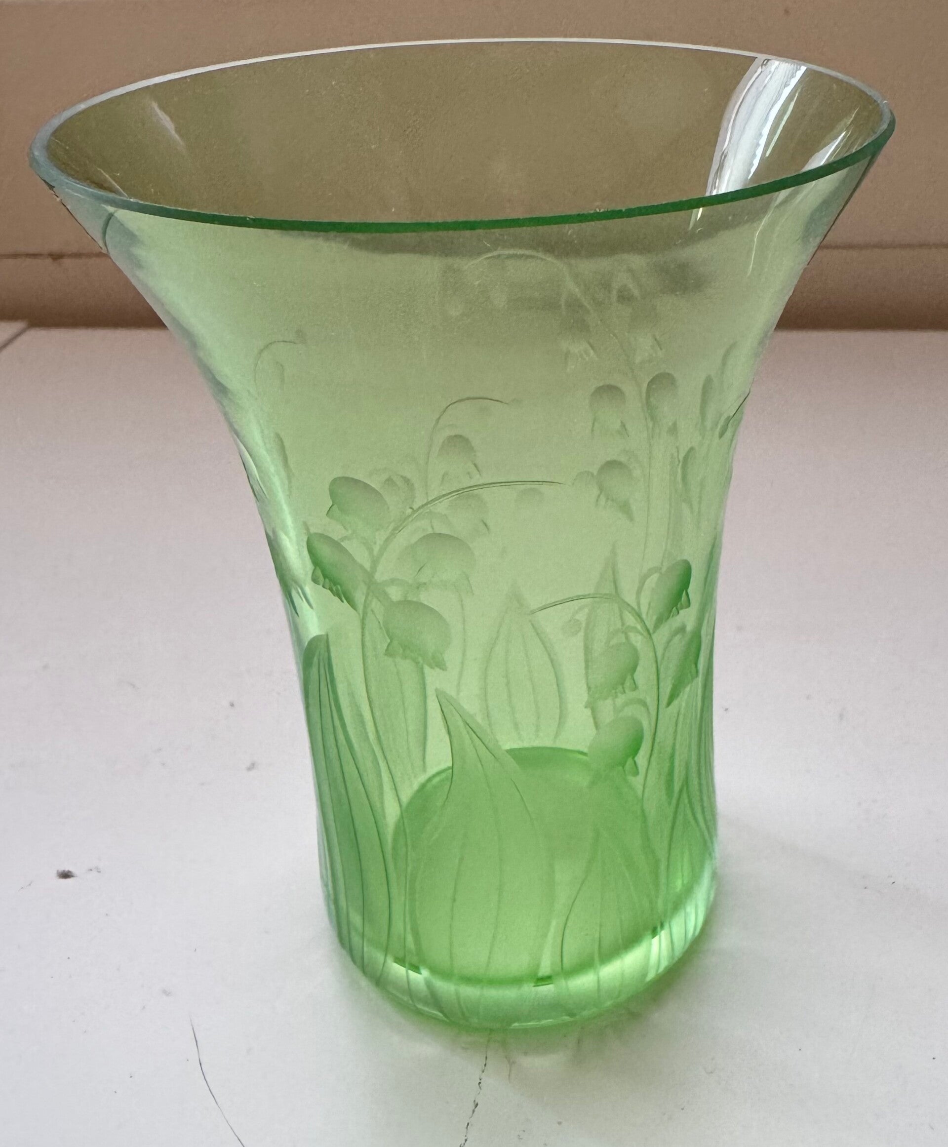 Dior Vase grünes Glas mit Maiglöckchen im Relief. Wunderschön und in perfektem Zustand.