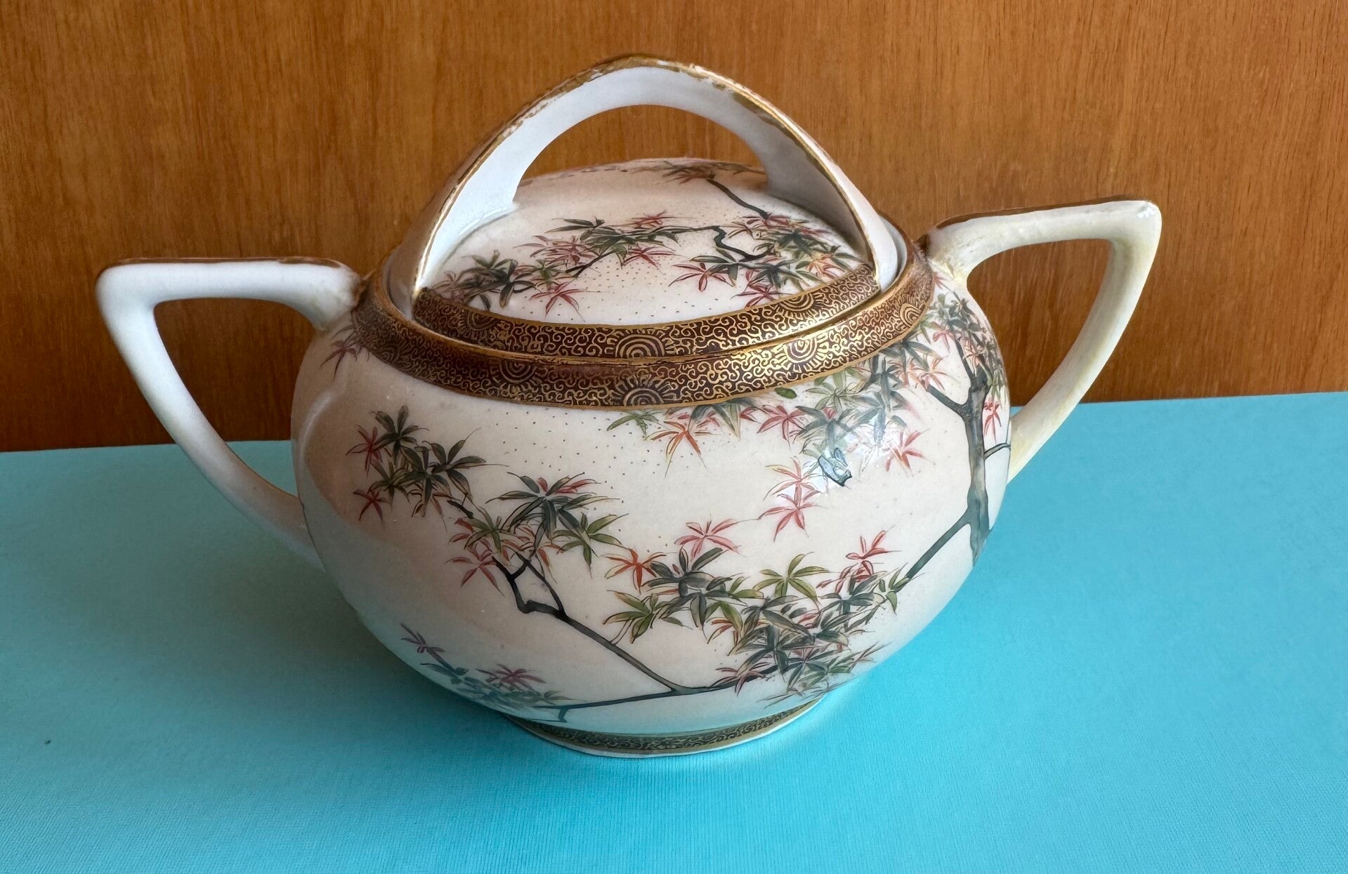Kutani Porzellan alte Zuckerdose mit Deckel Porzellan
