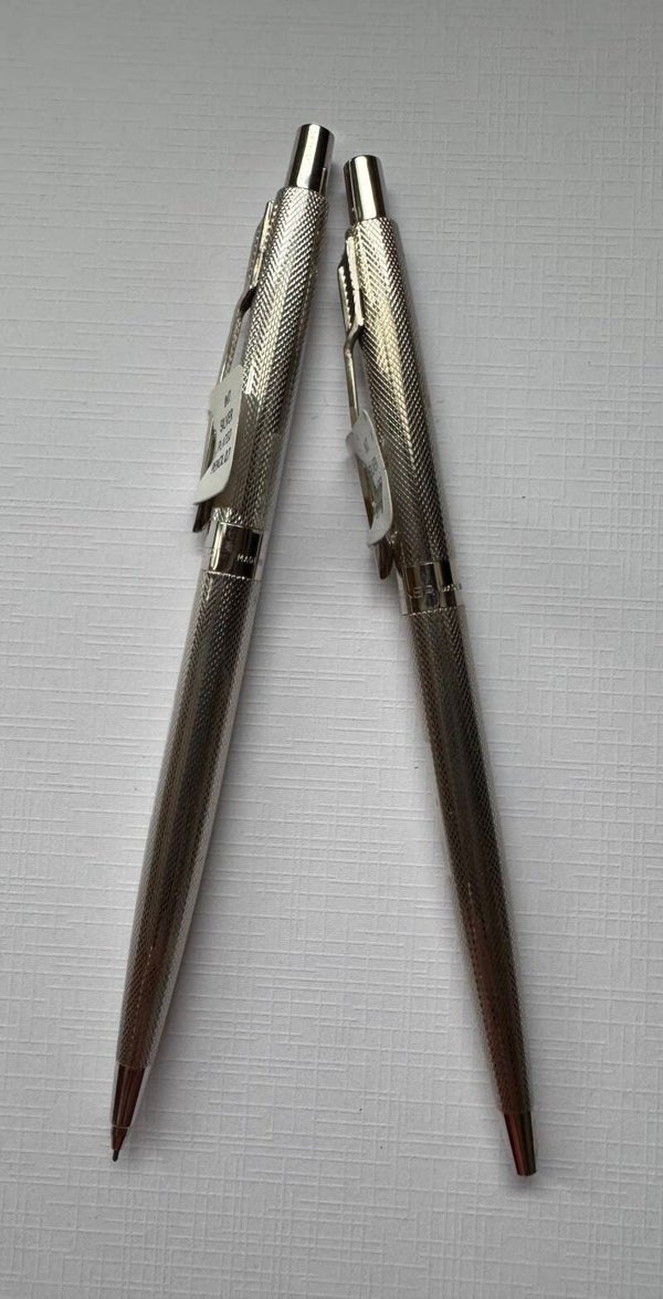 Leider braucht der Kugelschreiber eine Ersatzmine, während der Bleistift voll funktionstüchtig ist. Sie sehen niegel nagel neu aus, ausser beim Kugelschreiber hat es einen dunklen Fleck, siehe Bild 4.
