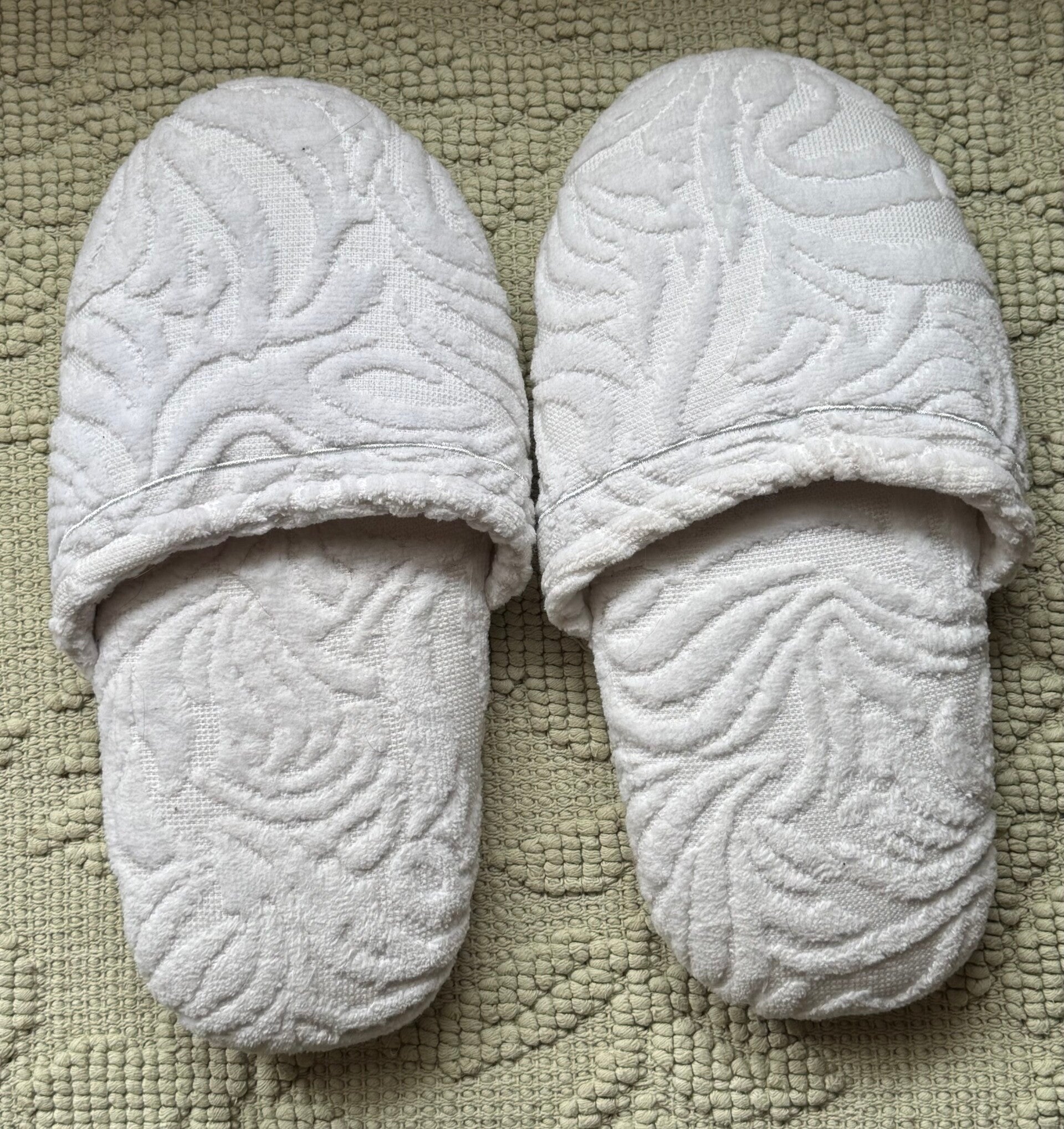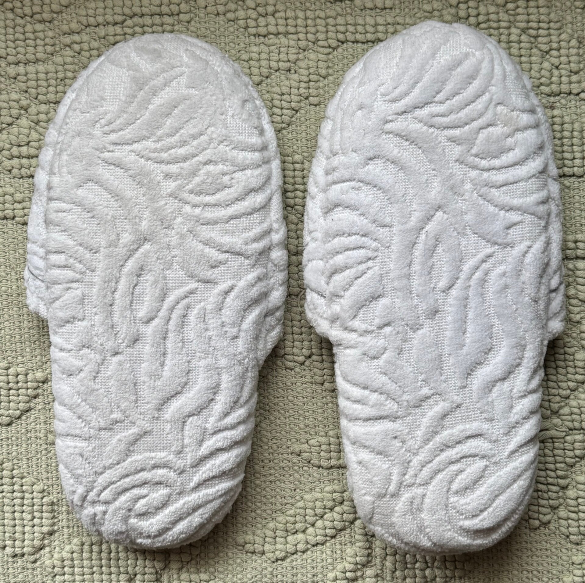 DIe Pantoffeln sind aus sehr dicker Baumwolle und wunderschön verarbeitet. Natürlich sind sie sehr weich.
