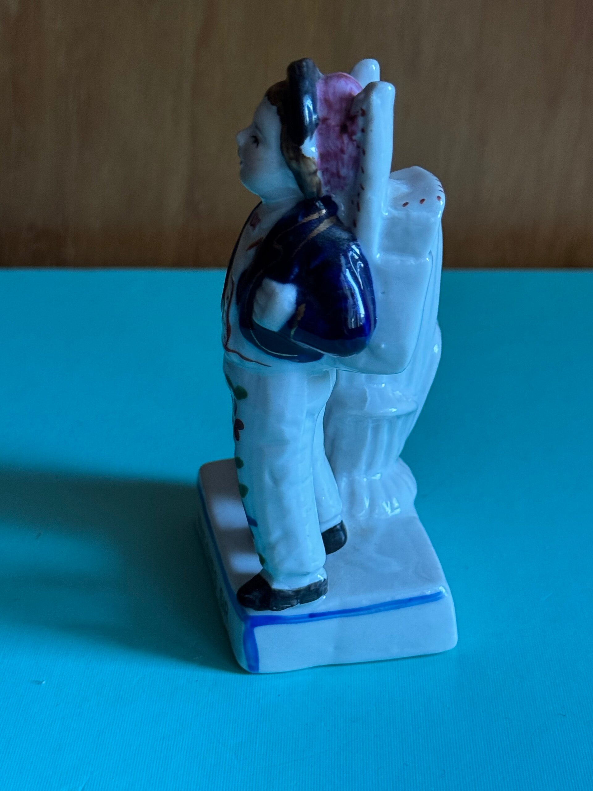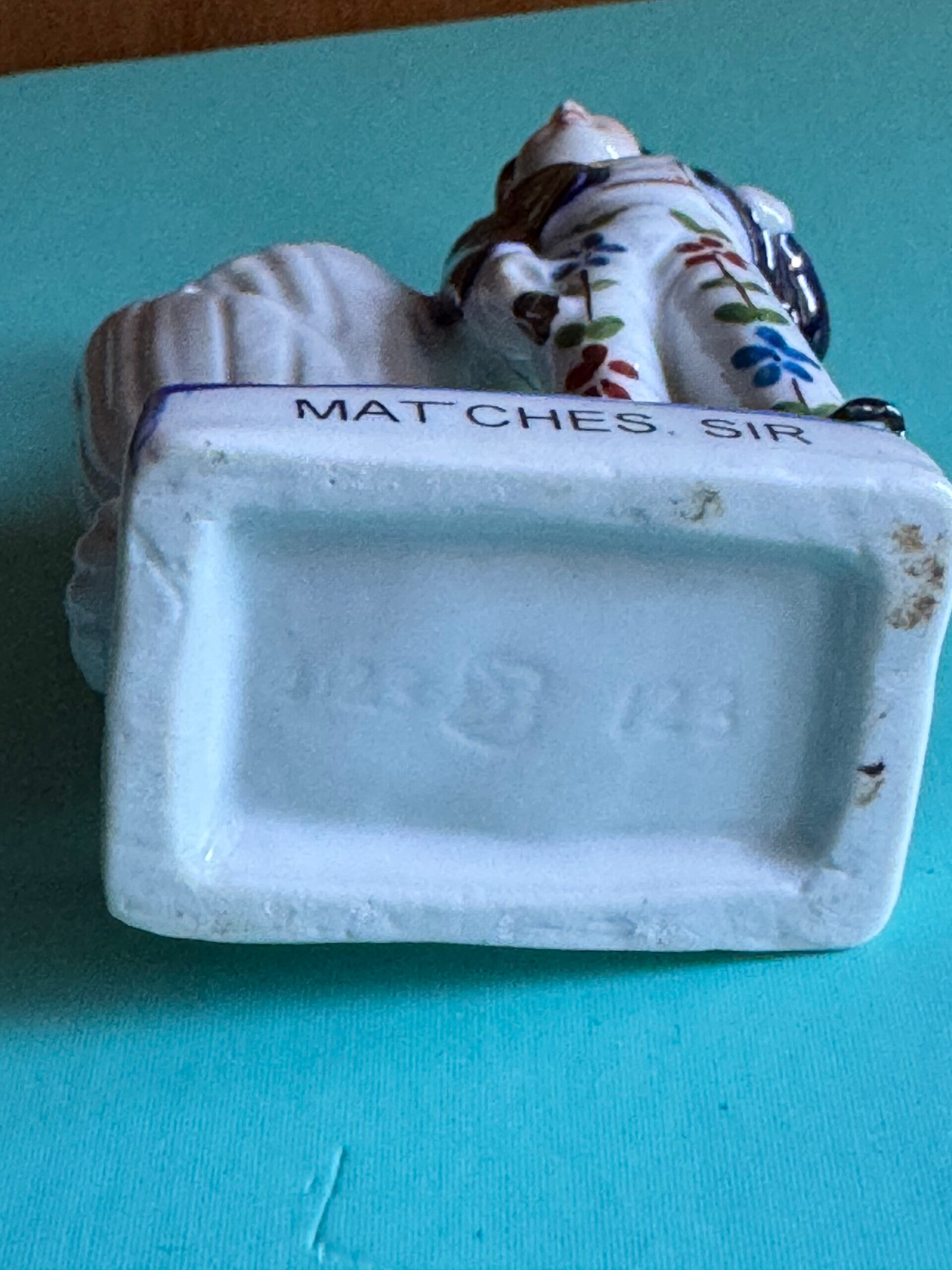 Diese Figur stellt ein Junge dar, der Streichhölzer verkauft. Das Auktionshaus hat die Jahresangabe gegeben, jedoch könnte er noch etwas älter sein, da diese Streichholzhalter während der Viktoria Zeit sehr beliebt waren.